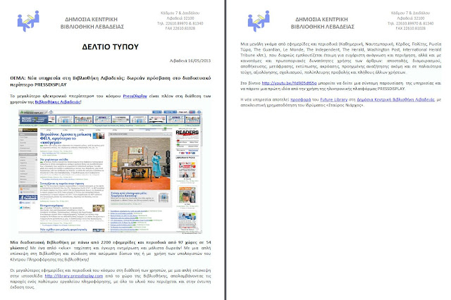 Νέα υπηρεσία από τη Βιβλιοθήκη Λιβαδειάς